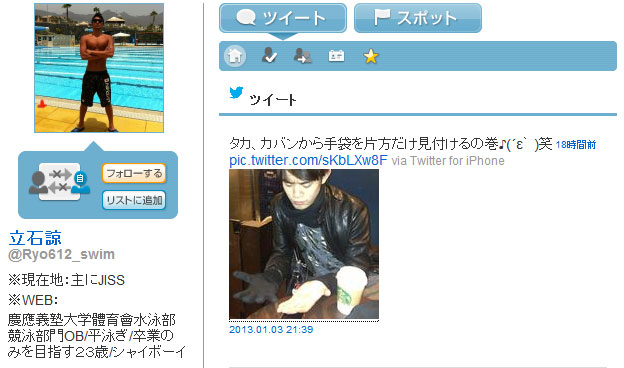 水泳選手の立石諒くんのツイッターに