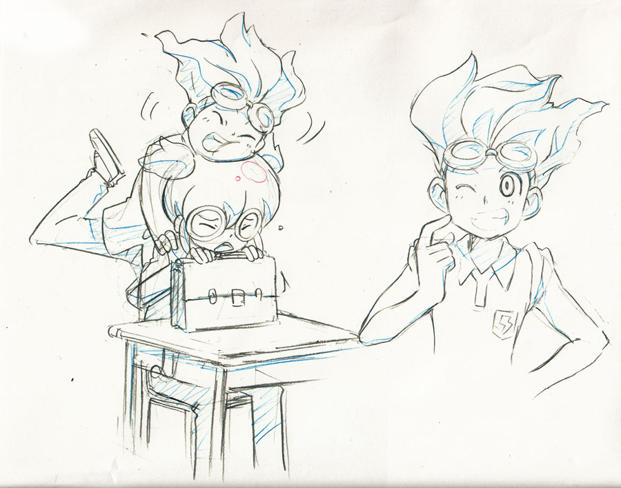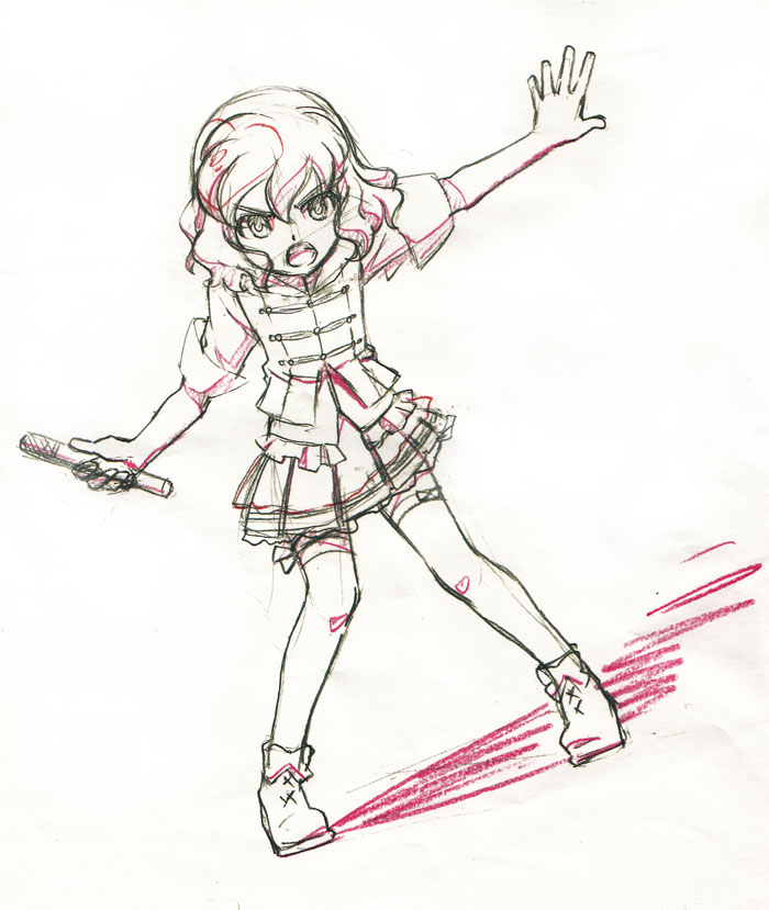 鉛筆と色鉛筆で、花束を持ってるキャラクターの絵にしました。