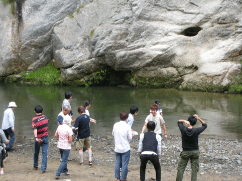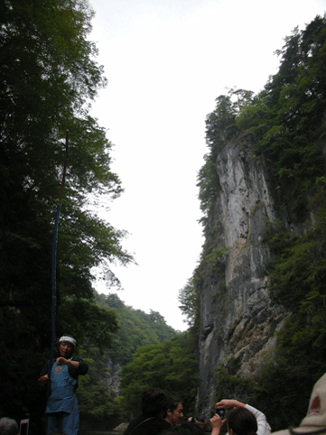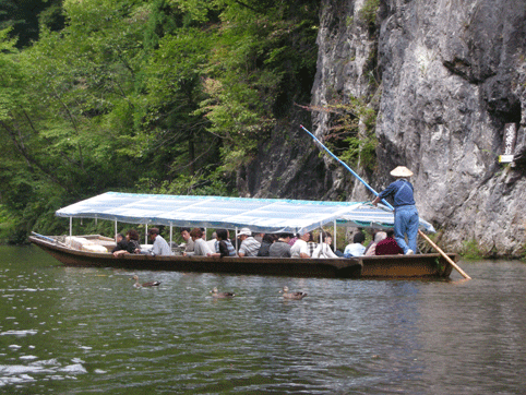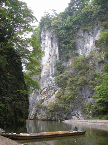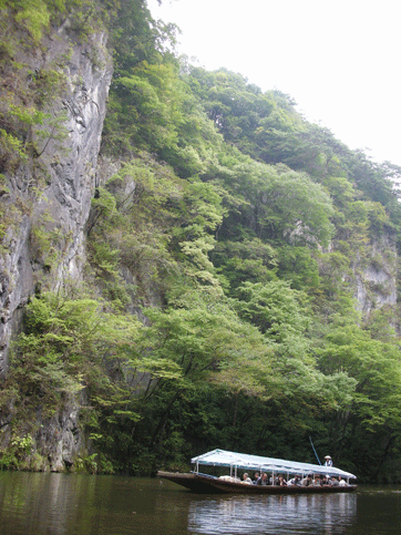 猊鼻渓の「舟下り」をします。