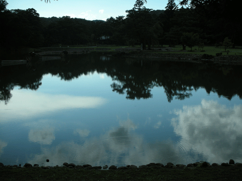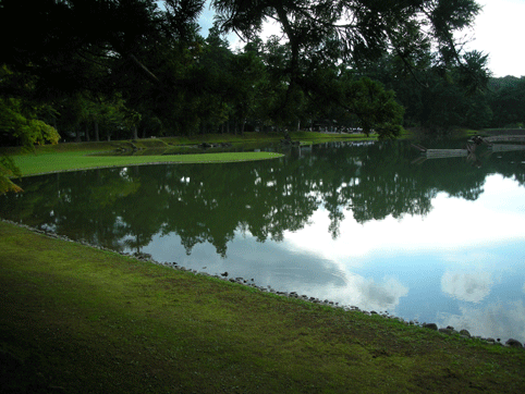 とってもキレイな大きな池が真ん中にあります。