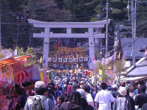 祭り中はクルマは通れなくなっているので